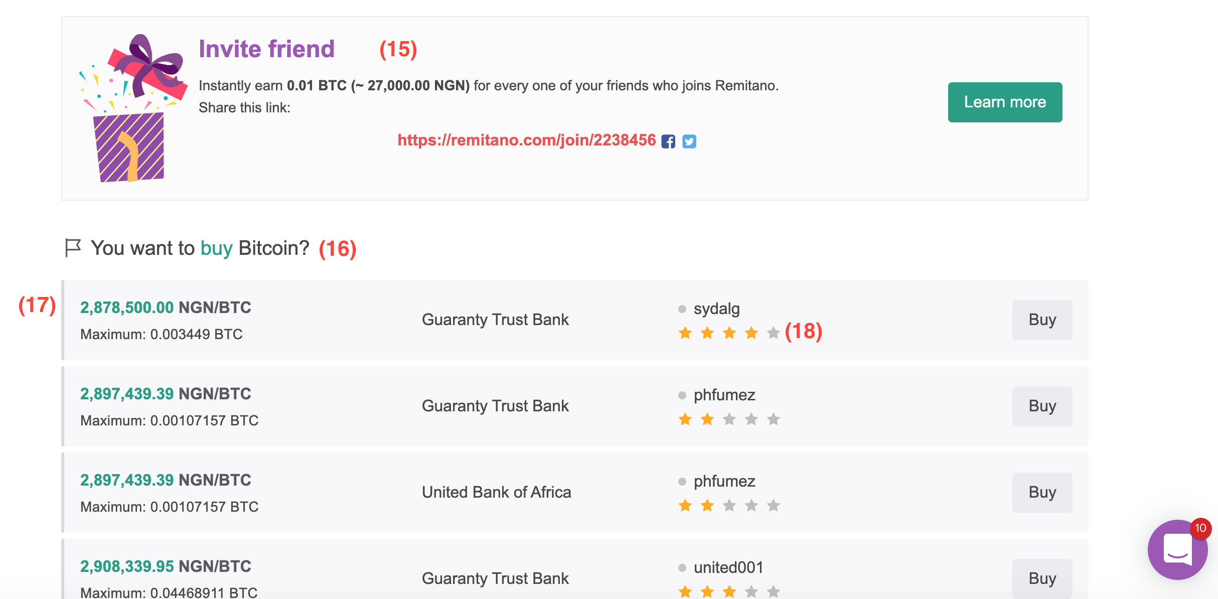 (16) List of “advertisements” from users for you to “BUY” their coins.
