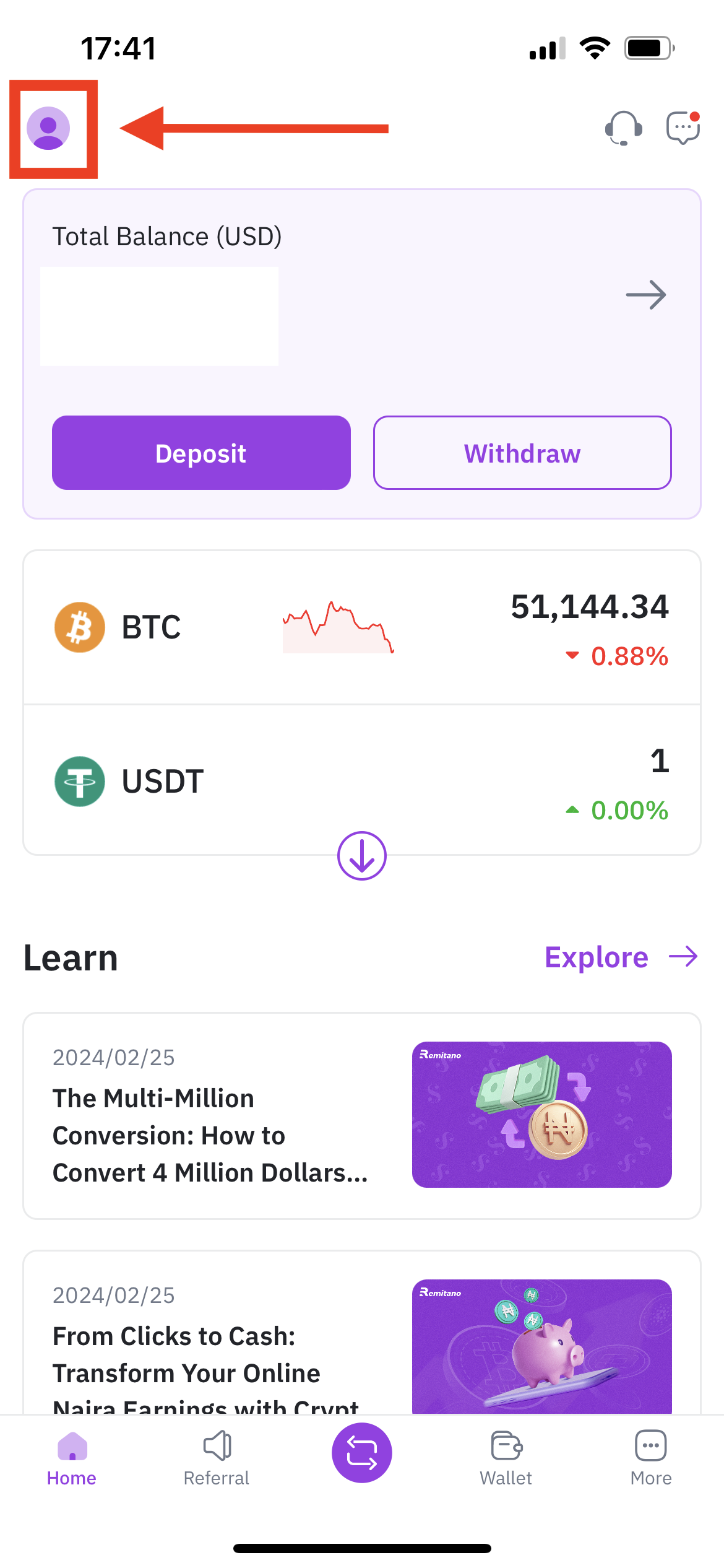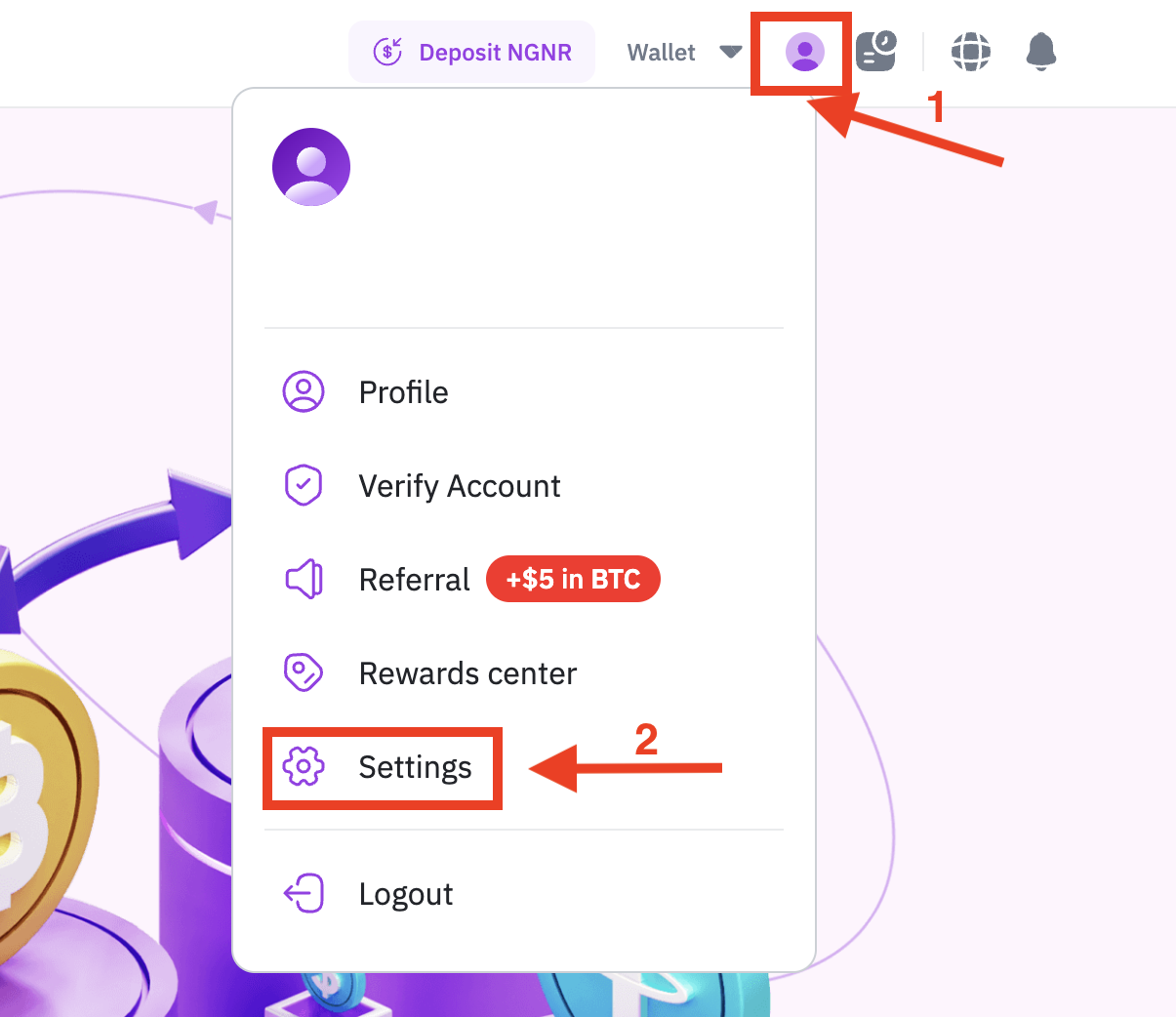 Step 2 Please click on Profile icon (1) -> then choose Setting (2)