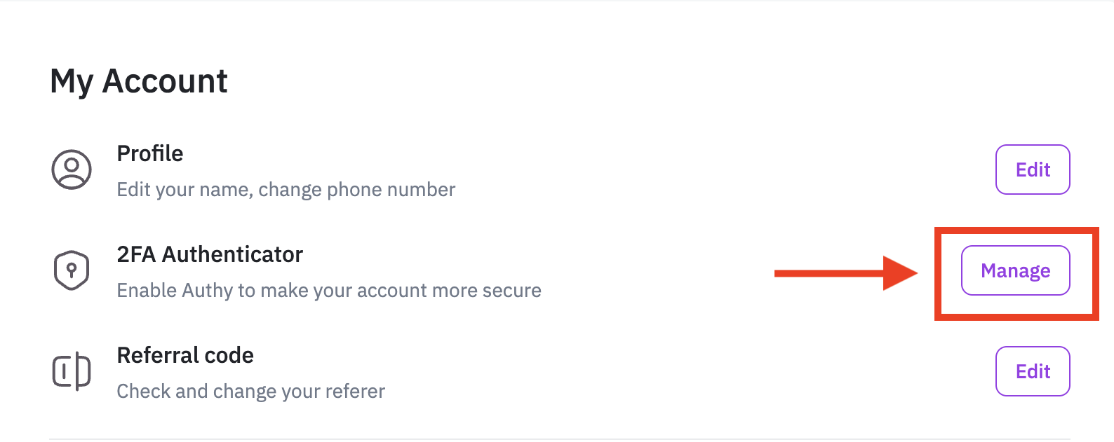 Step 3. At 2FA Authenticator -> Please kindly choose Manage button