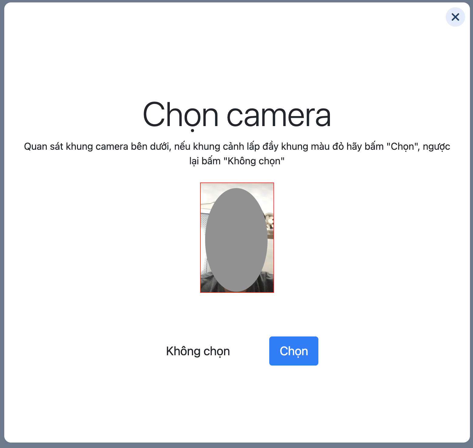 Bấm Chọn nếu thấy camera có thể hiện rõ mặt bạn và chiếm tỉ lệ đủ lớn trên khung, nếu không thì bấm Không chọn.